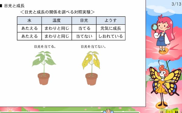 キャラクターによる対話型授業で、見て、聞いて学べるようになっており、アニメーションや音声を使いながら、大事なポイントを分かりやすく示してくれます。