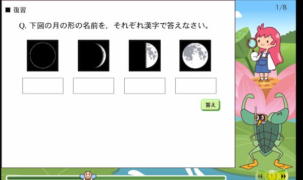 ゲーム要素により、ゲーム感覚で始めやすく、続けやすい。各種テストもあり、理解から定着へ、成績アップへとつなげやすい。